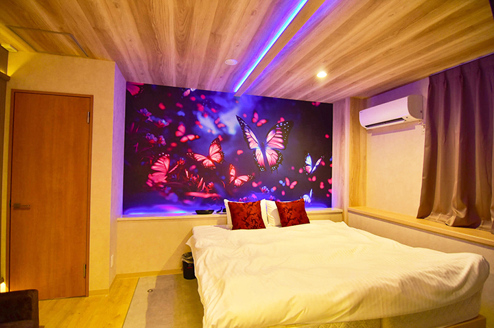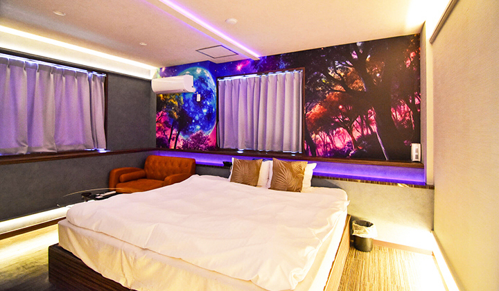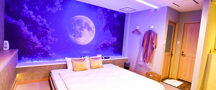 幻想的なデザインルームに広々ベッド、ジャグジーで心も体もリラックス。
