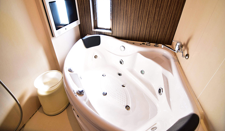 波の音に包まれて、部屋に戻ればまるで宇宙。光あふれるデザインルームとジャグジーバスで、旅の疲れを癒します。